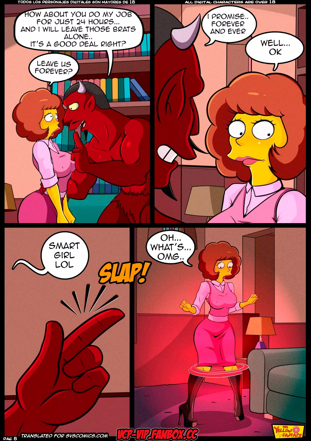 Maude Flanders is a caring mother and devoted wife, but one fateful day she’s forced to make a deal with the devil. Her task is simple — complete The List. At first, Edna thinks finishing it will be an easy ride… until one final, unexpected task appears, leaving her utterly speechless. Hot The Simpsons porn comic parody.